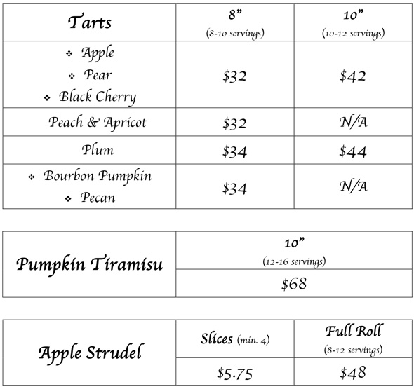 Note: All orders are final, changes and cancellations cannot be accommodated. Full pre-payment is required. |
